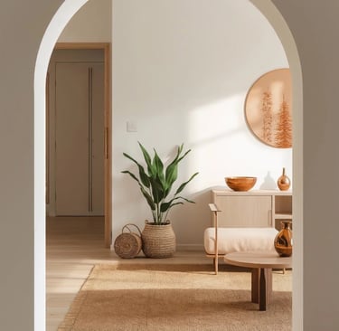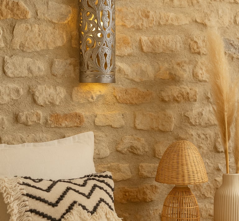 Ambiance marocaine moderne, naturelle et minimaliste.