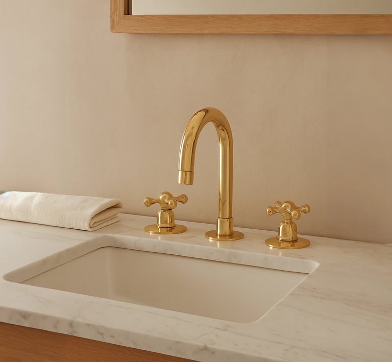 Robinets, luminaires et détails décoratifs en cuivre artisanal