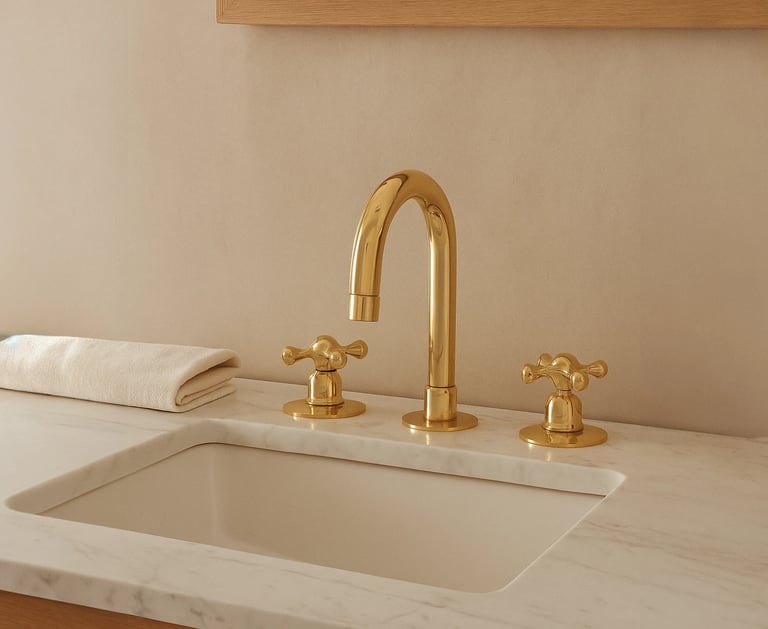 Handcrafted faucets, wall lights, and accessories